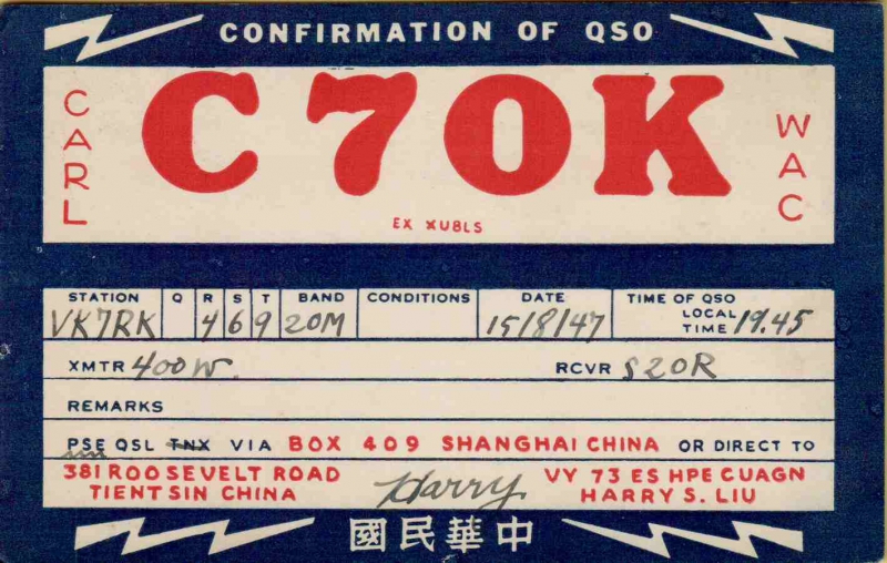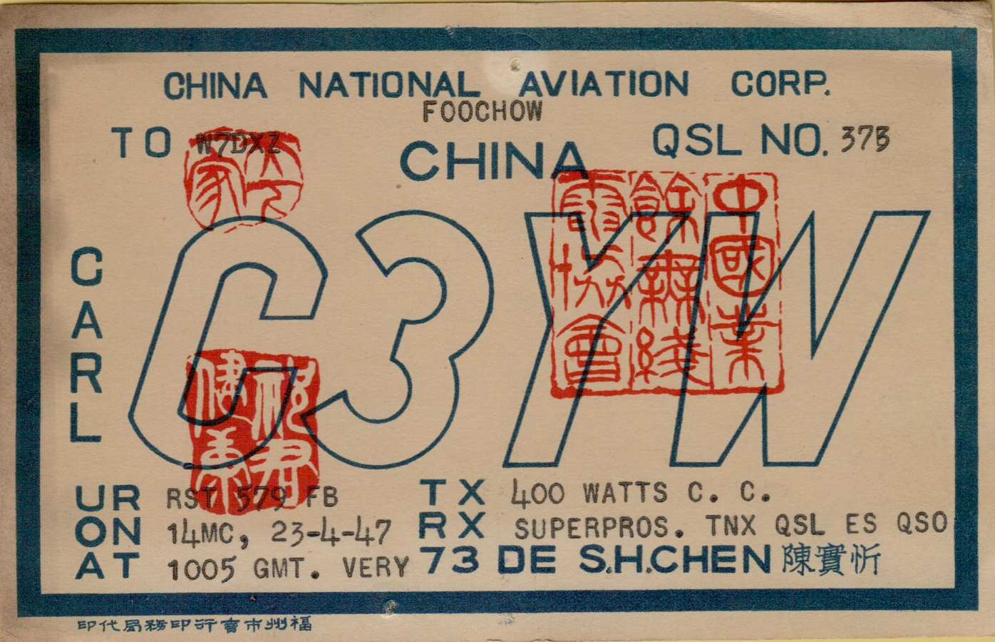 COLECION DE QSLs DE CHINA PRE Y POST II GUERRA MUNDIAL