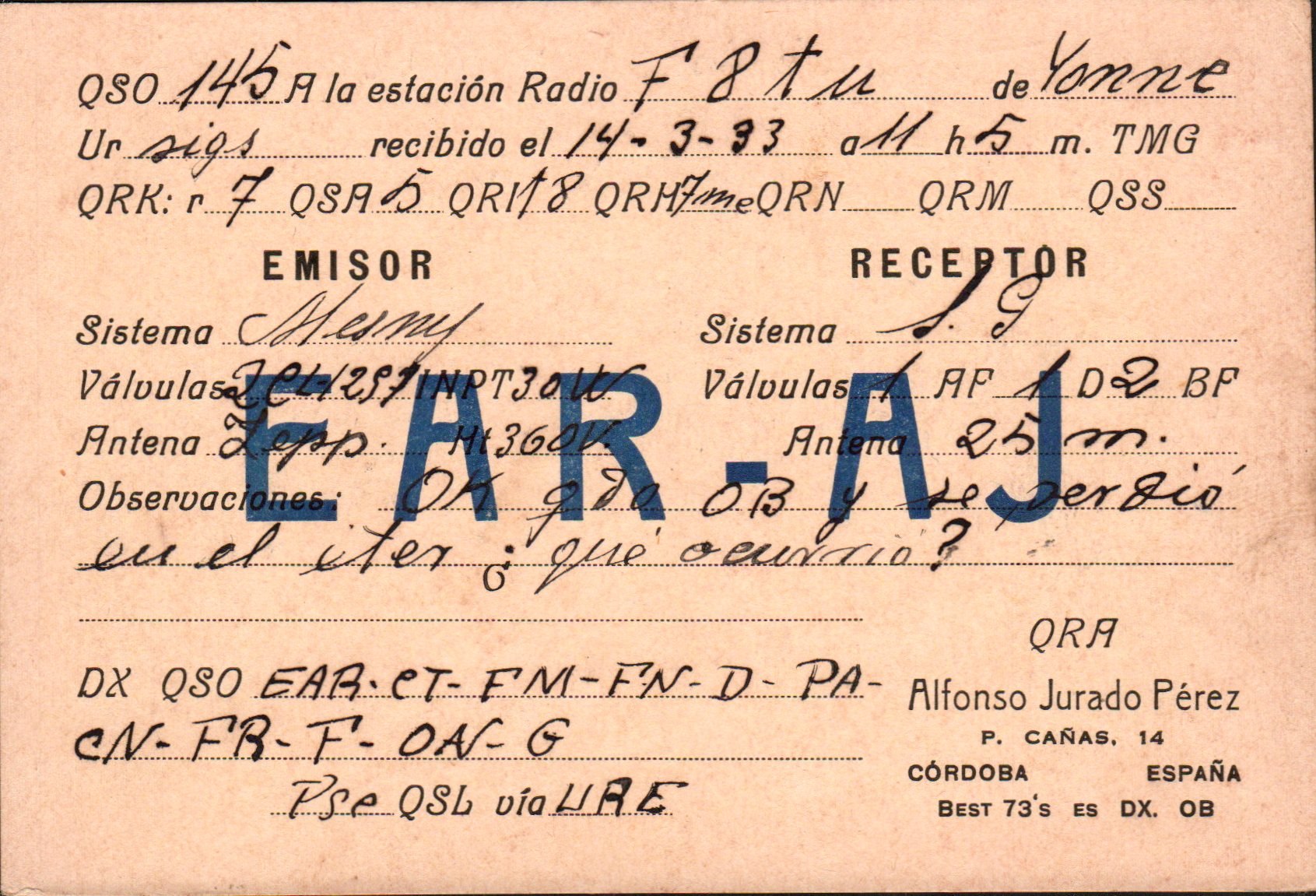 | EAR-AJ | Alfonso Jurado Perez | 1933 | Córdoba | |||