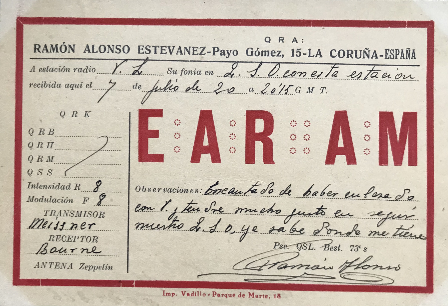 | EAR-AM | Ramón Alonso Estébanez | 1932 | EAR-286 | EA1AZ | La Coruña | |