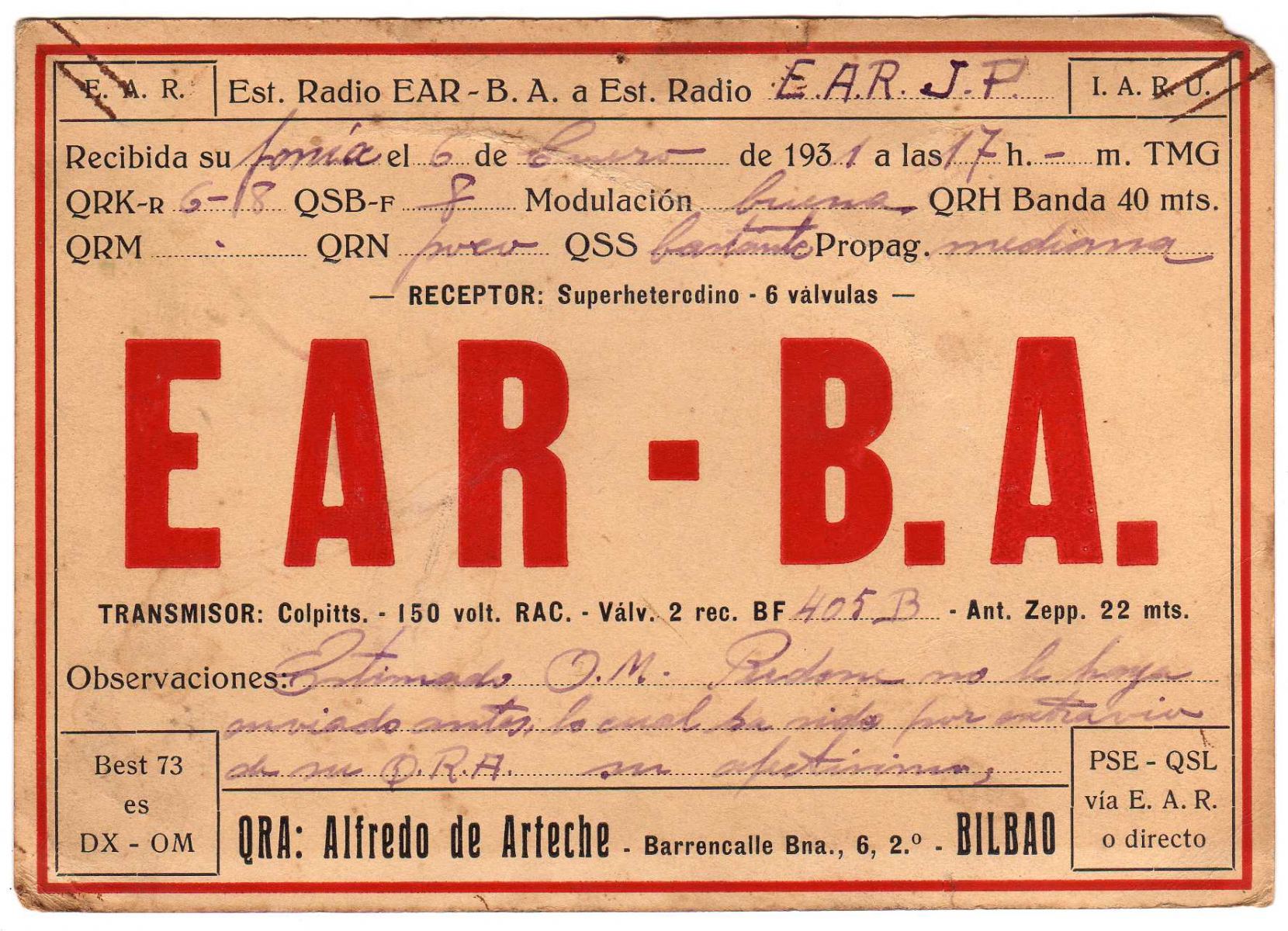 | EAR-BG | Gustavo Green | 1931 | EAR-235 | EA2BD | Bilbao | |