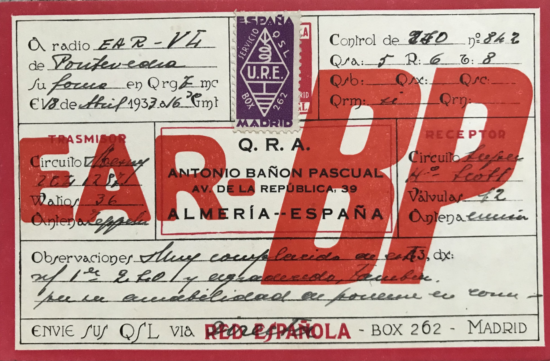 | EAR-BP | Antonio Bañon Pascual | 1931 | EAR-298 | EA7BG | Almeria | |
