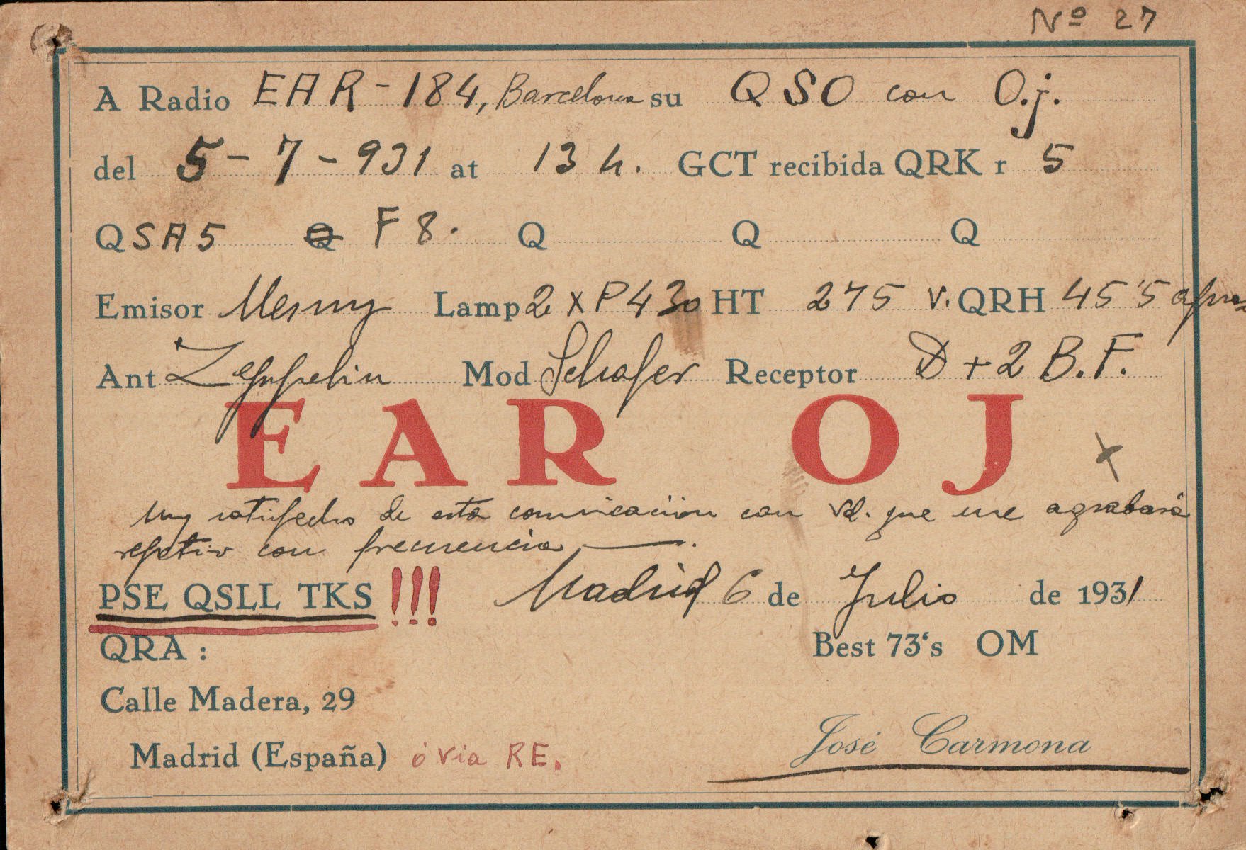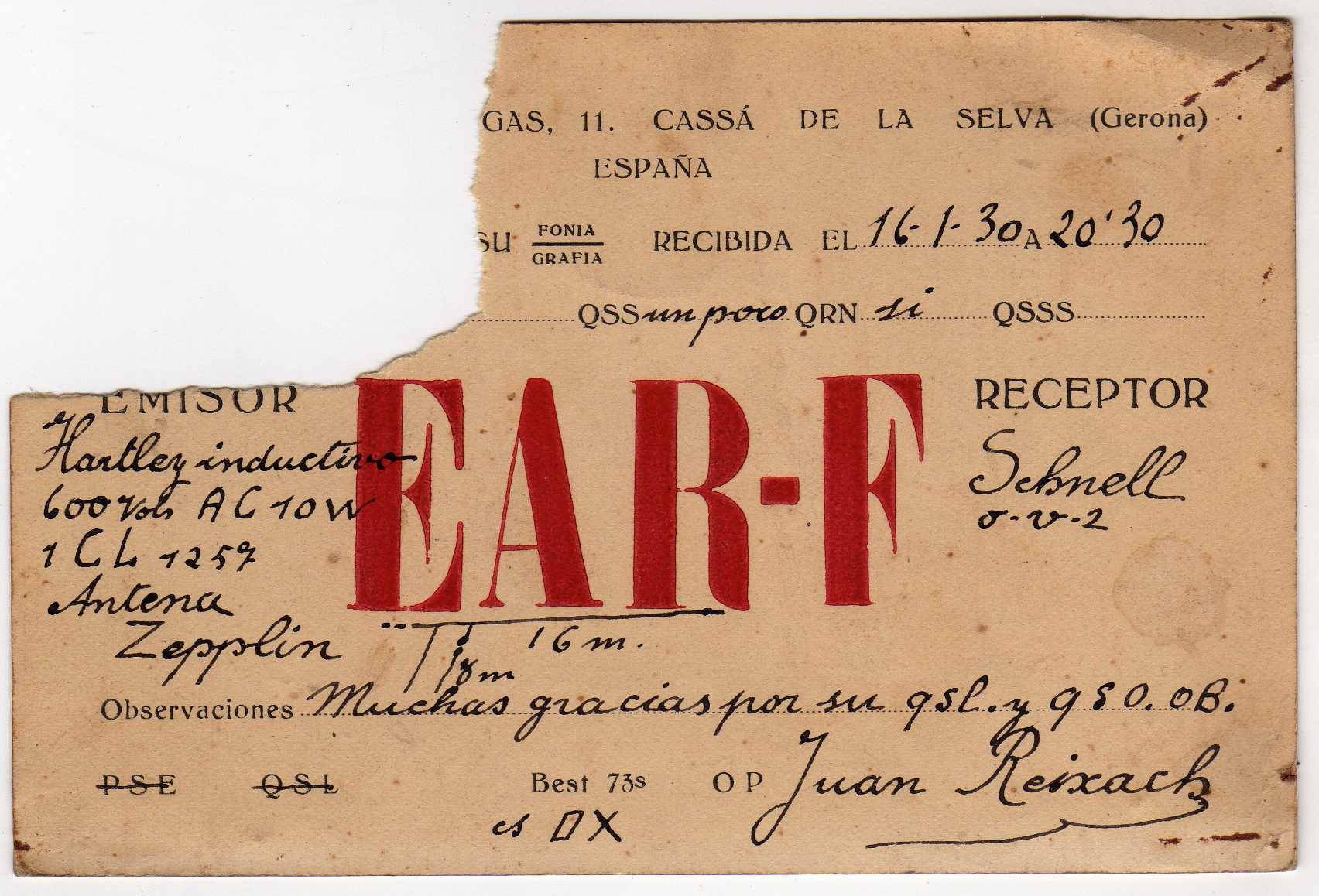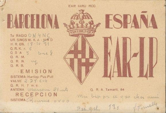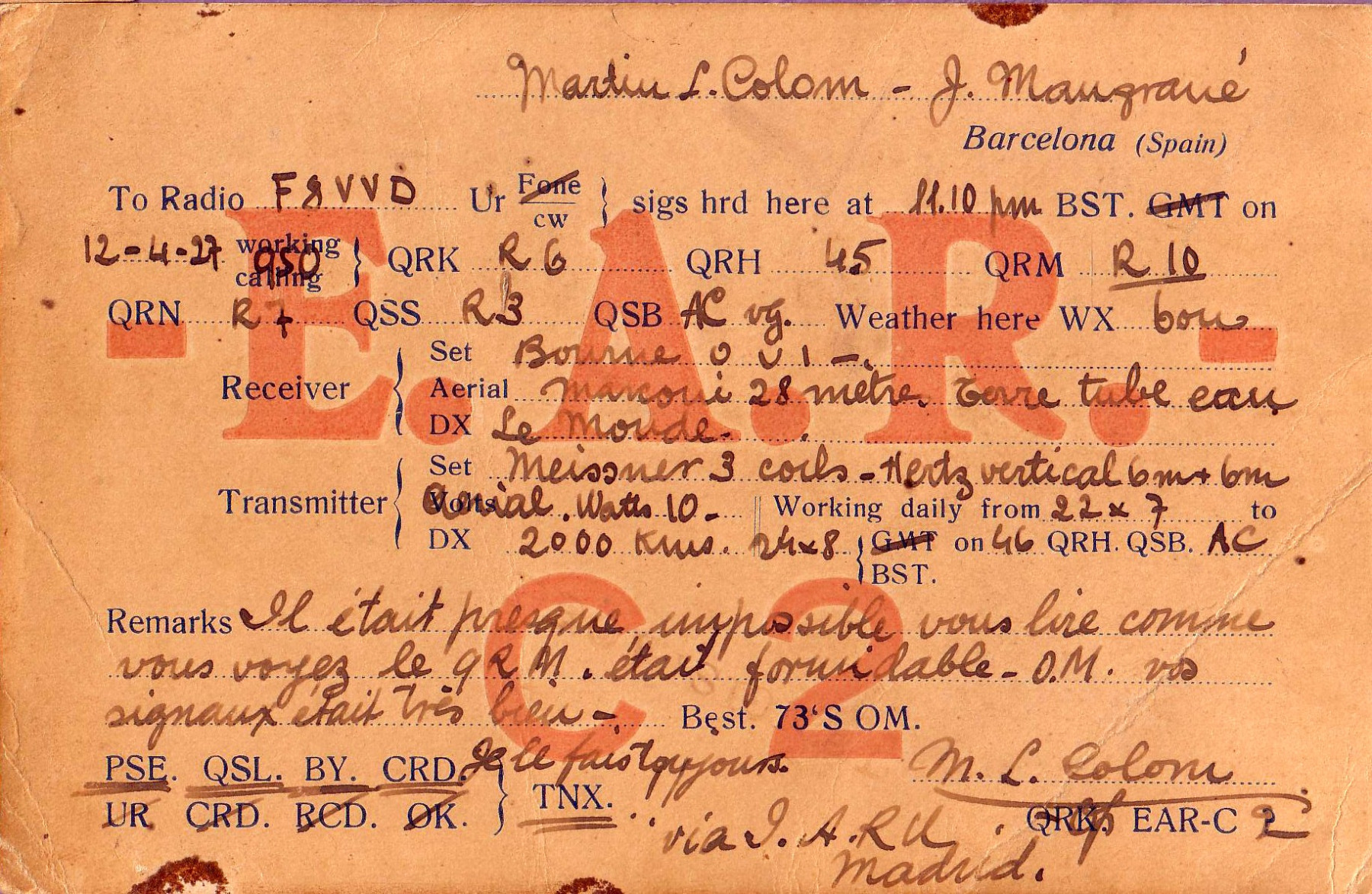 | EAR-C27 | Juan Fornells | 1929 | EAR-241 | EA3CM | Barcelona | |