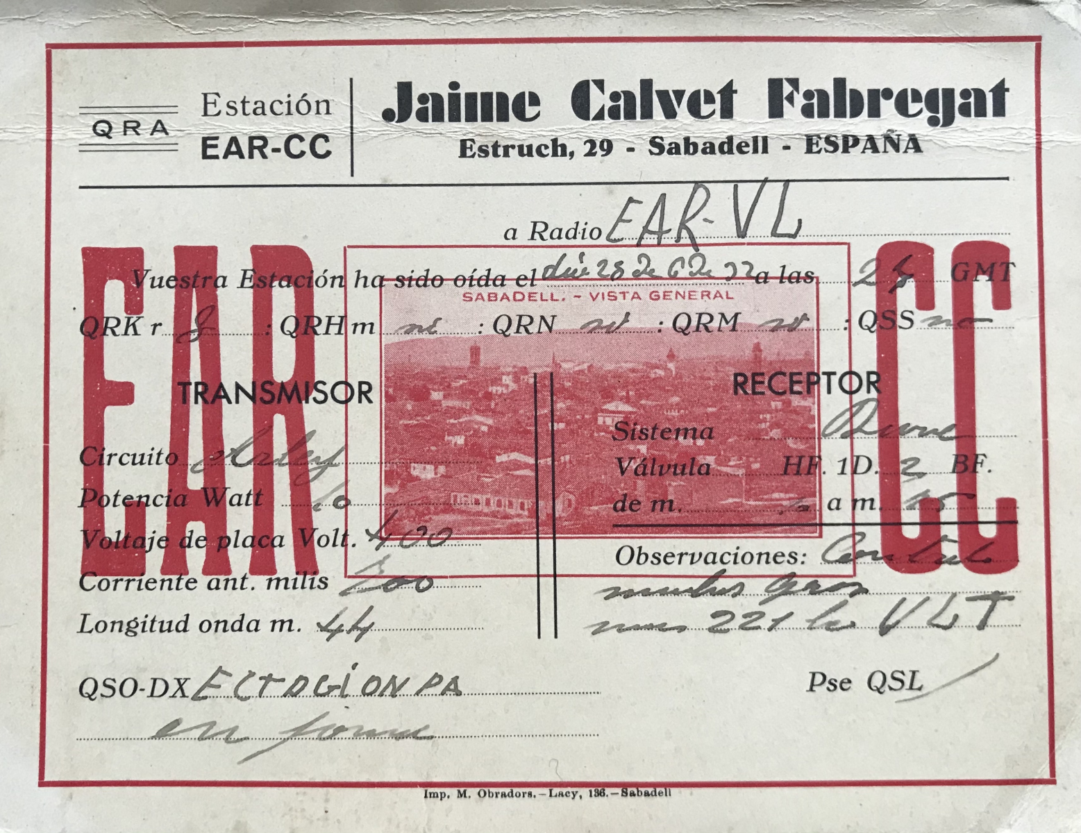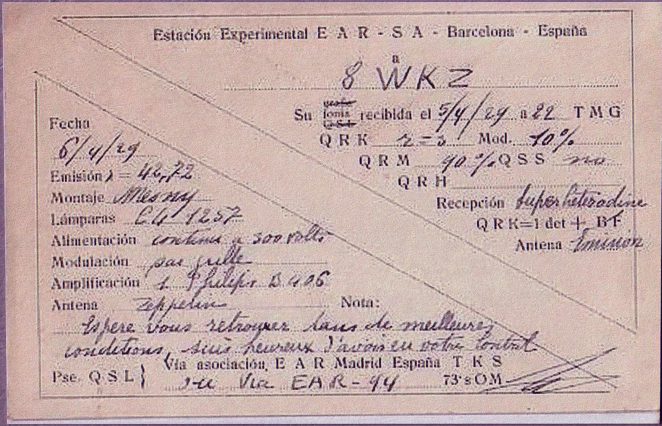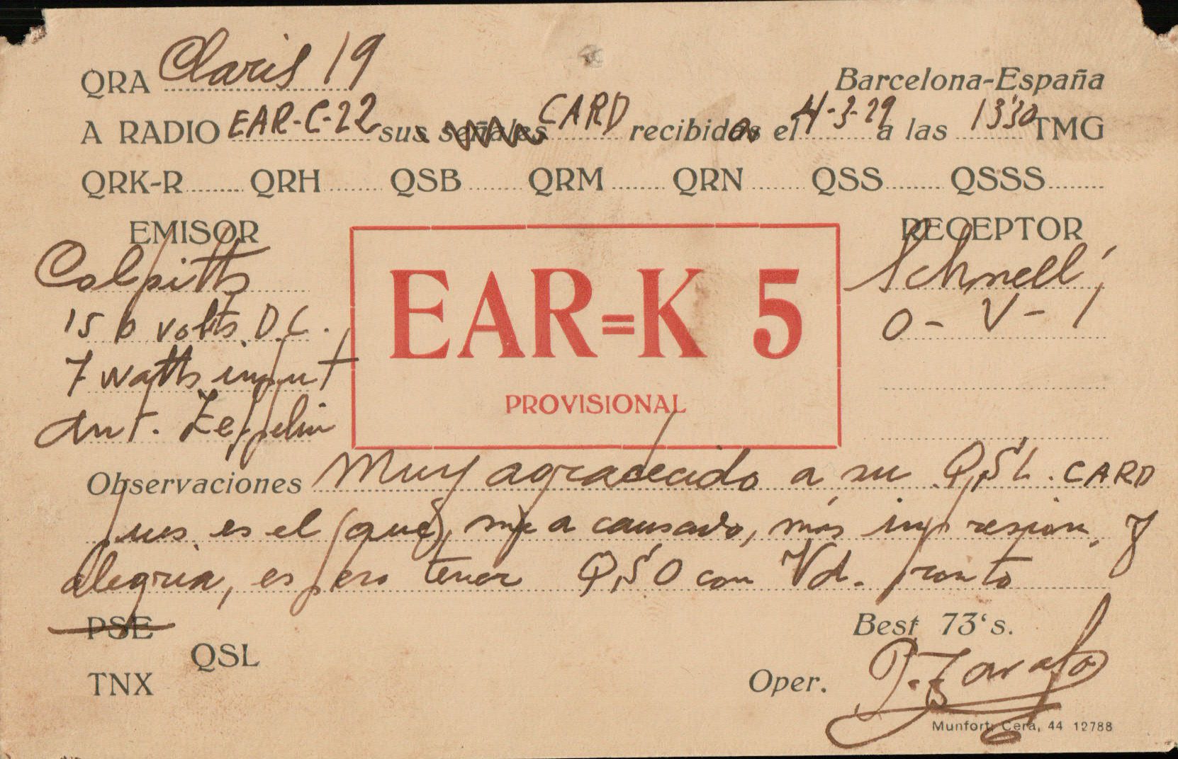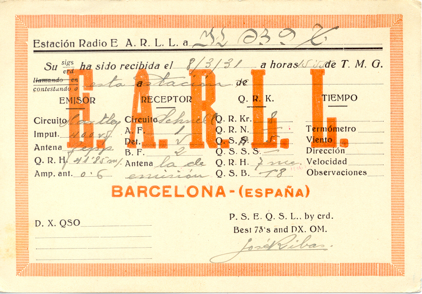 | EAR-C27 | Juan Fornells | 1929 | EAR-241 | EA3CM | Barcelona | |