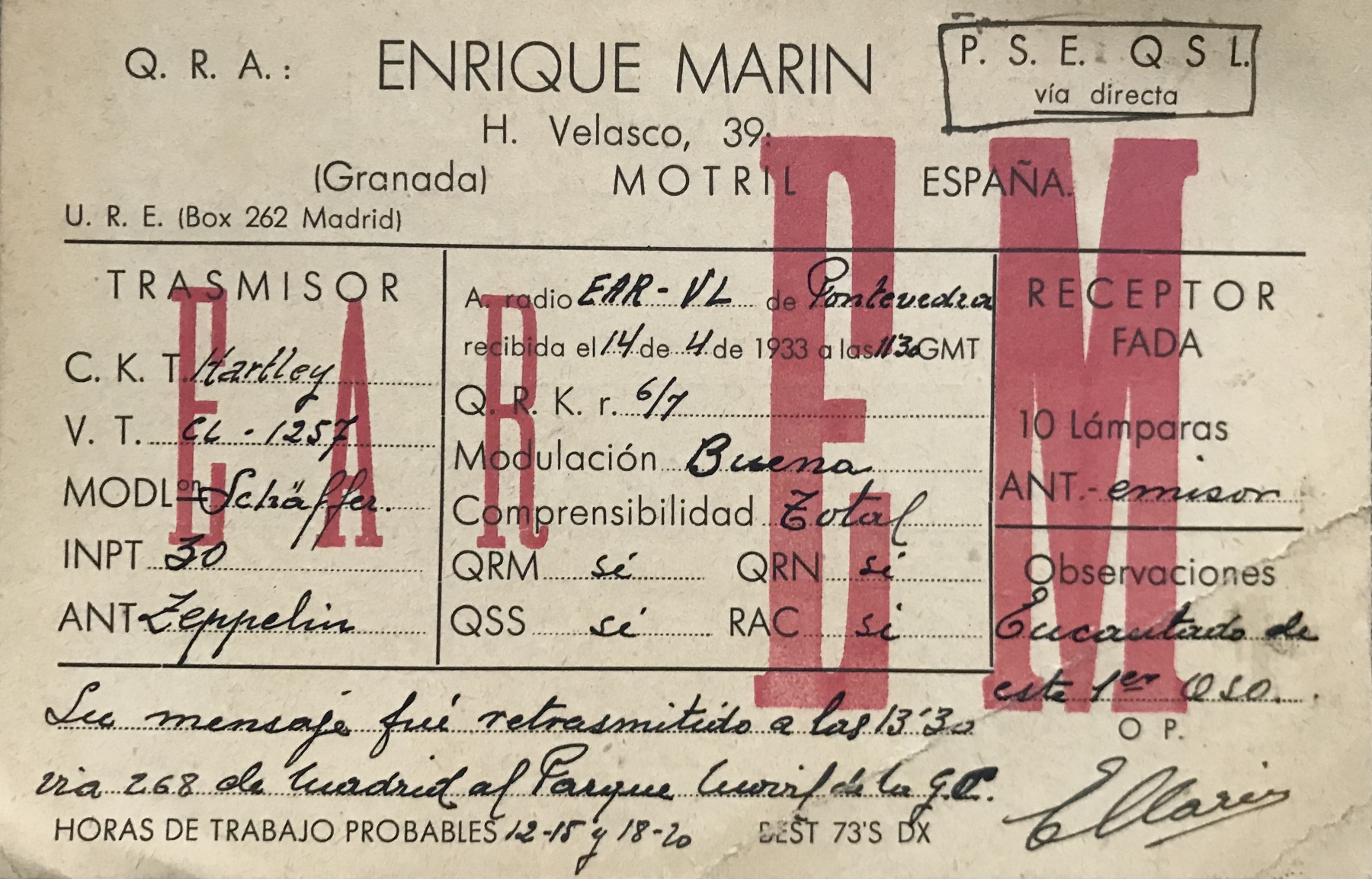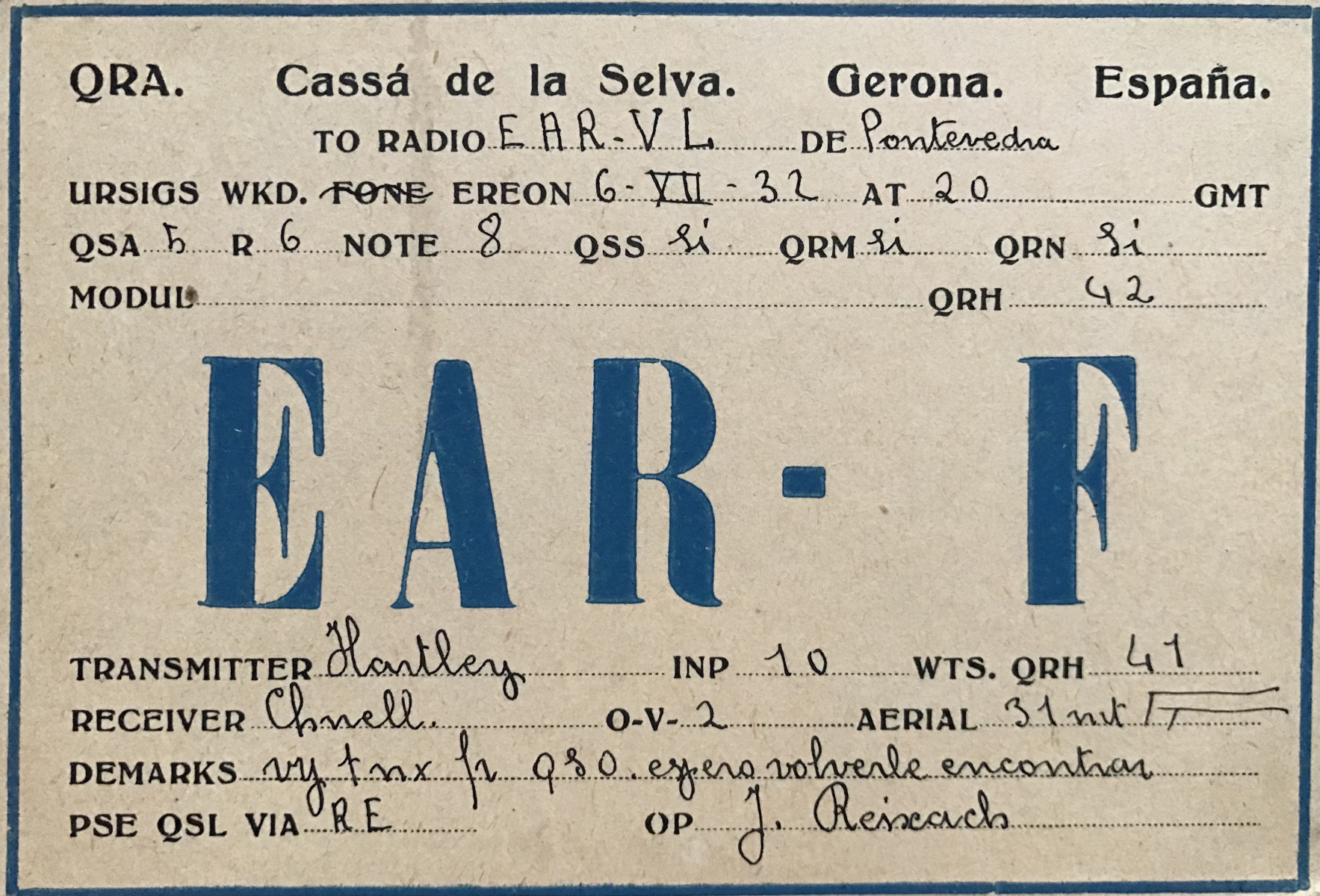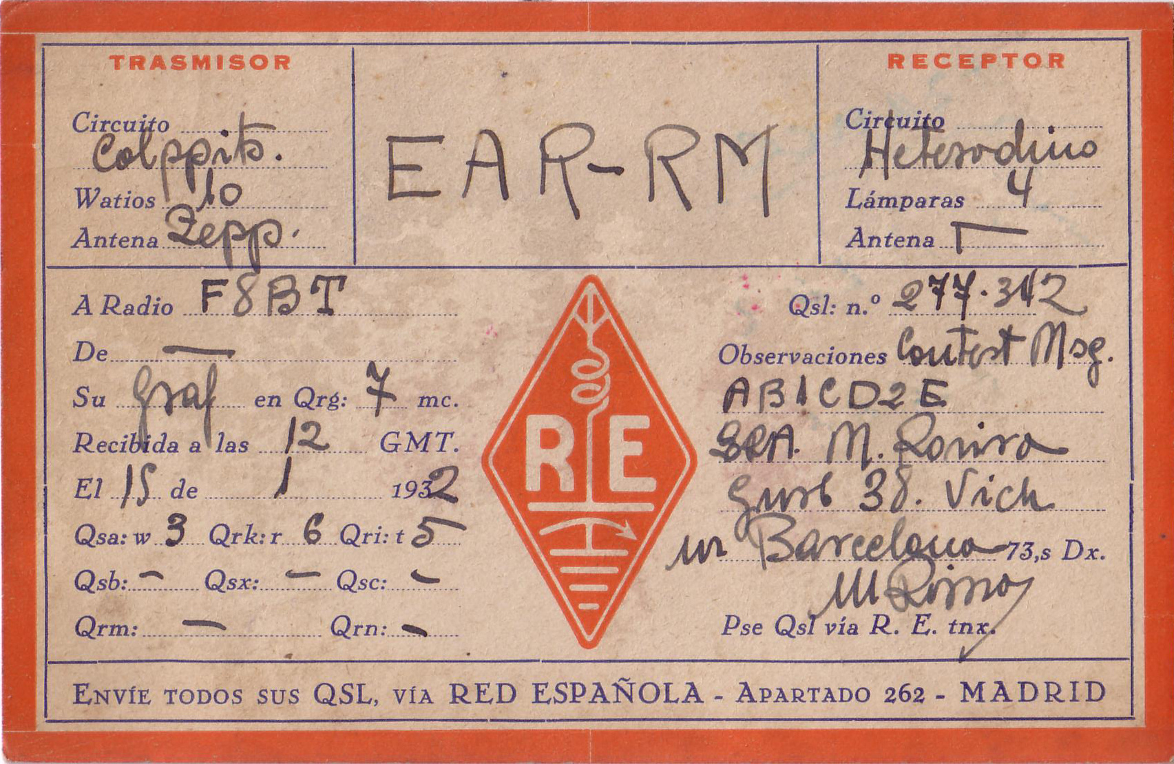 | EAR-RM | Marcial Rovira | 1931 | EAR-295 | EA3DZ | Caldas de Mont Buy (B) | |