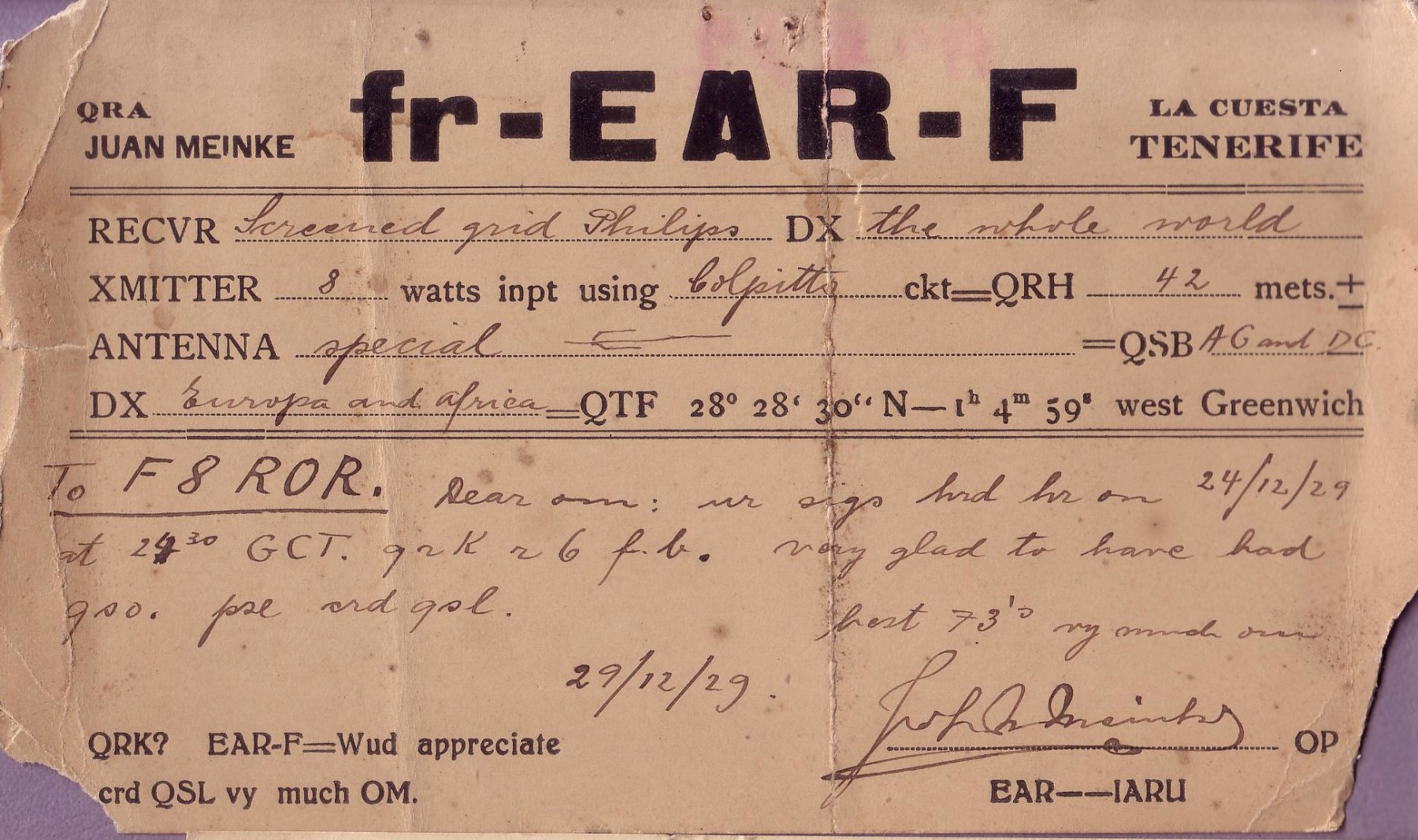 | FR-EAR-F | Juan Meinke | 1929 | La Cuesta (TF) | |||