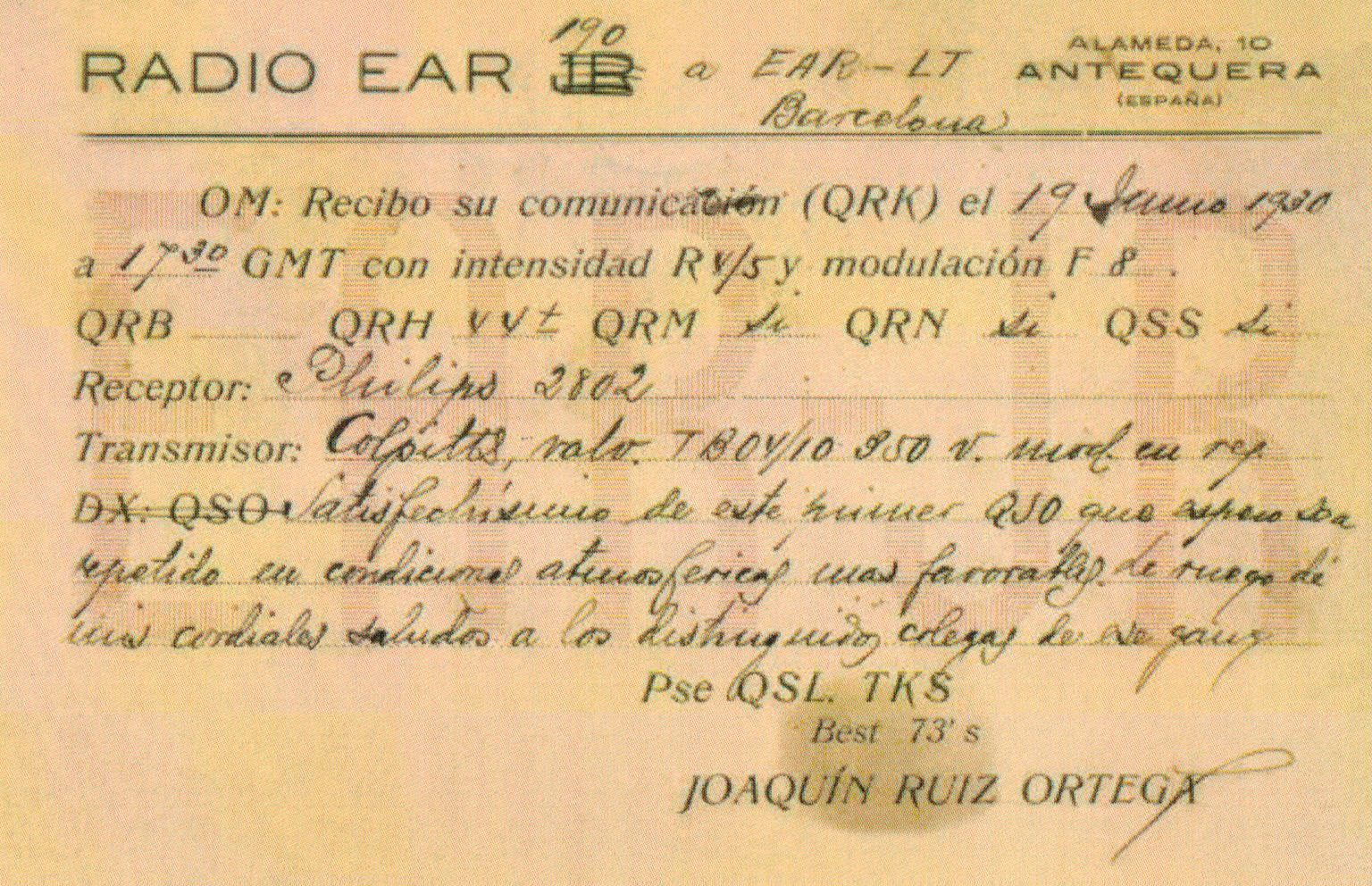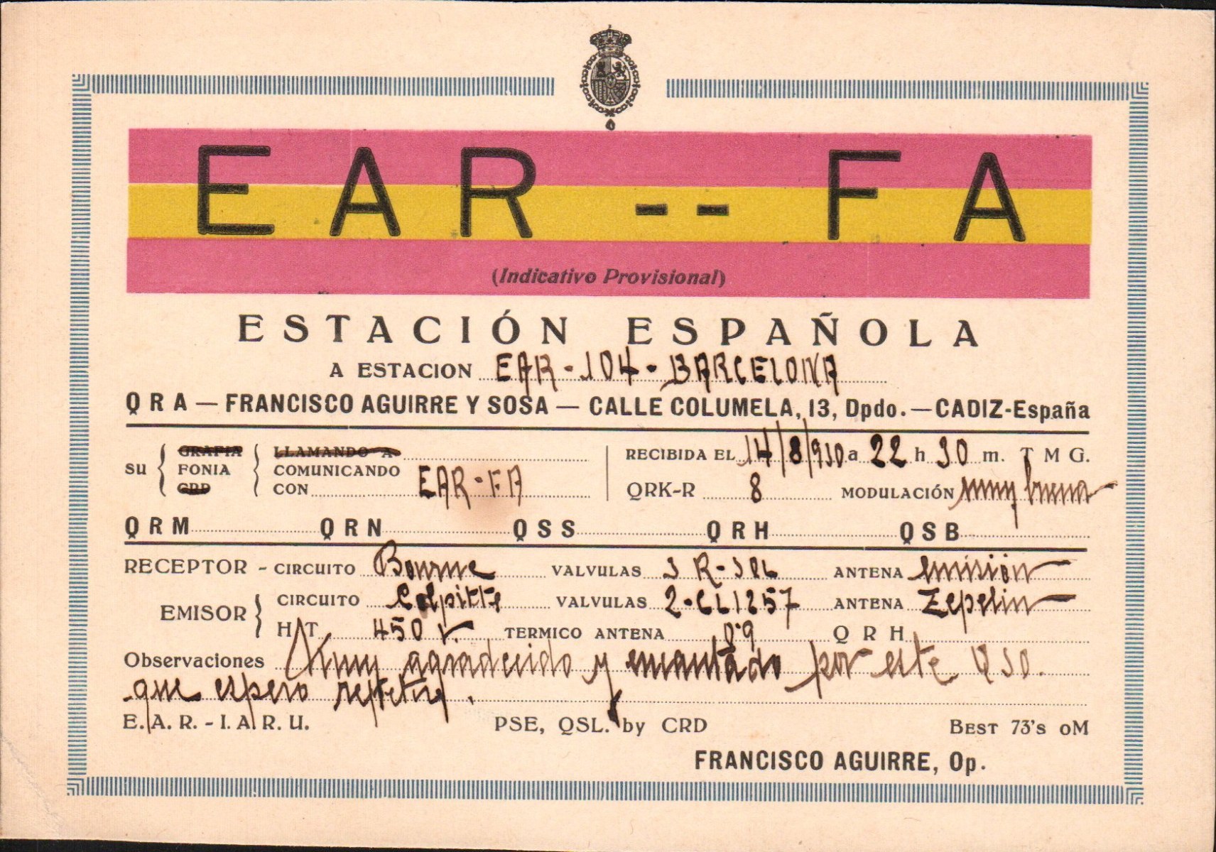 | EAR-AM (3) | Antonio Muncunill | 1930 | EAR-84 | EA7AJ | Cádiz | |
