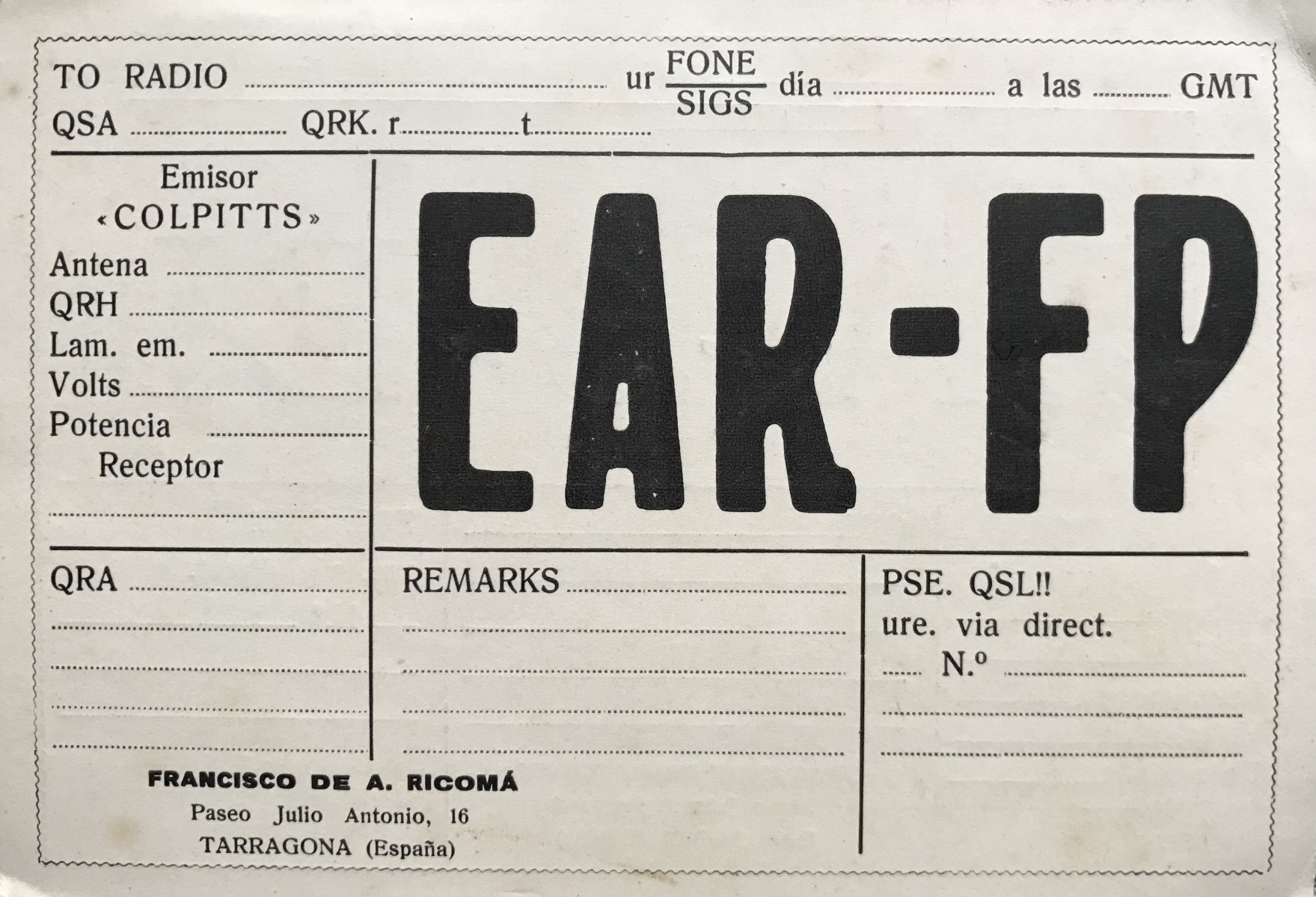 | EAR-C9 | José María Font Pomés | 1932 | EAR-243 | EA3CO | ||