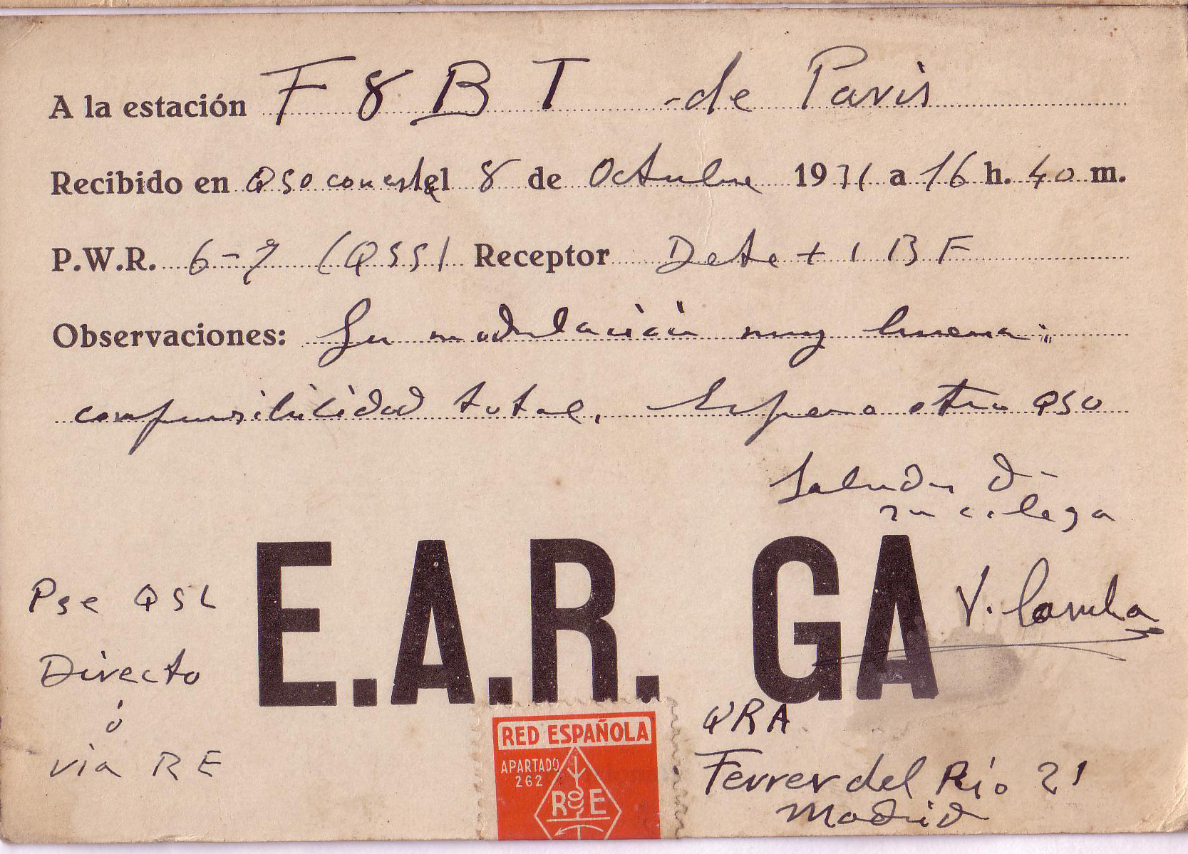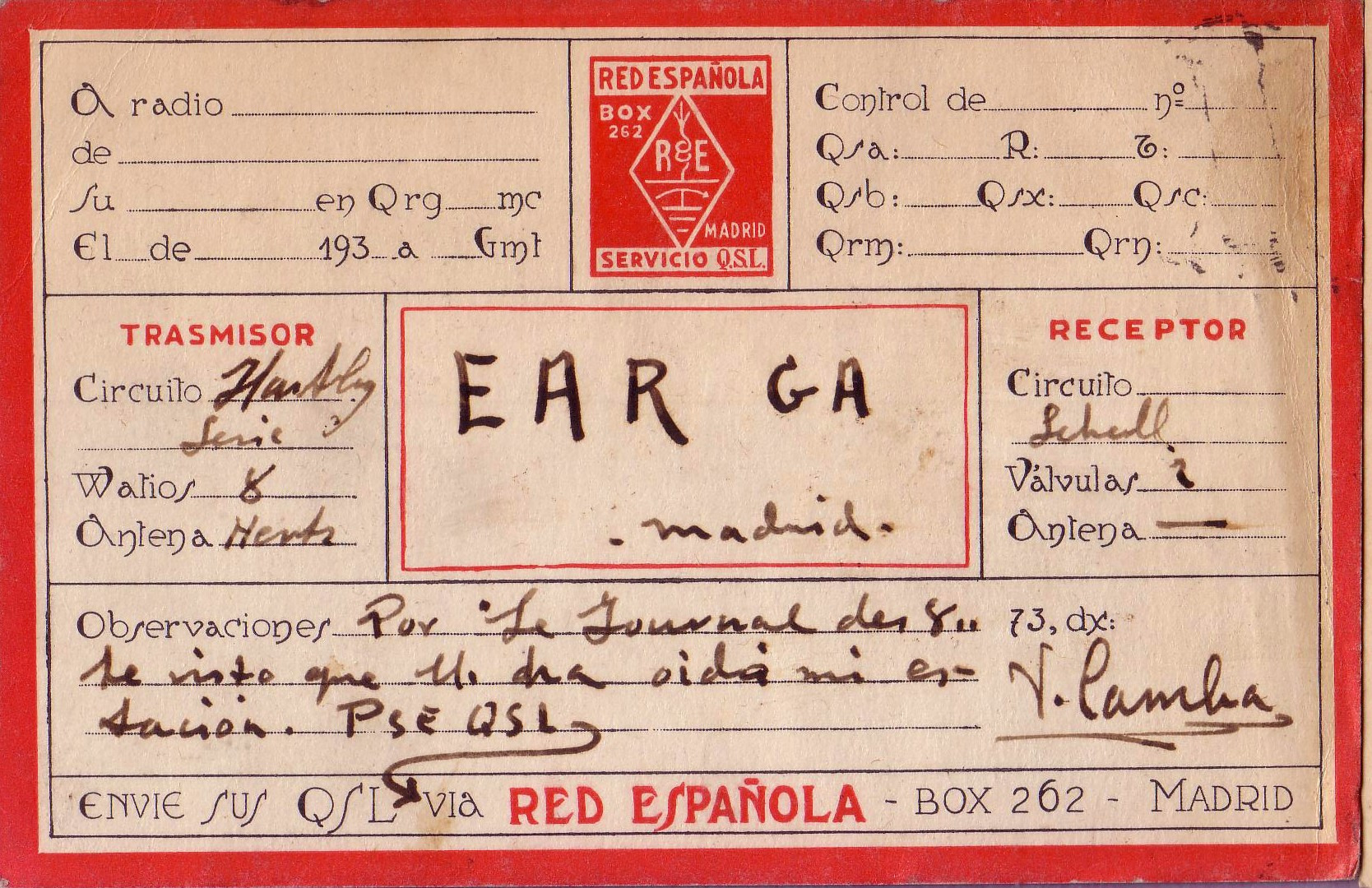 | EAR-B4 | Fernando Gayo del Valle | 1929 | EAR-161 | EA4AY | Madrid | |