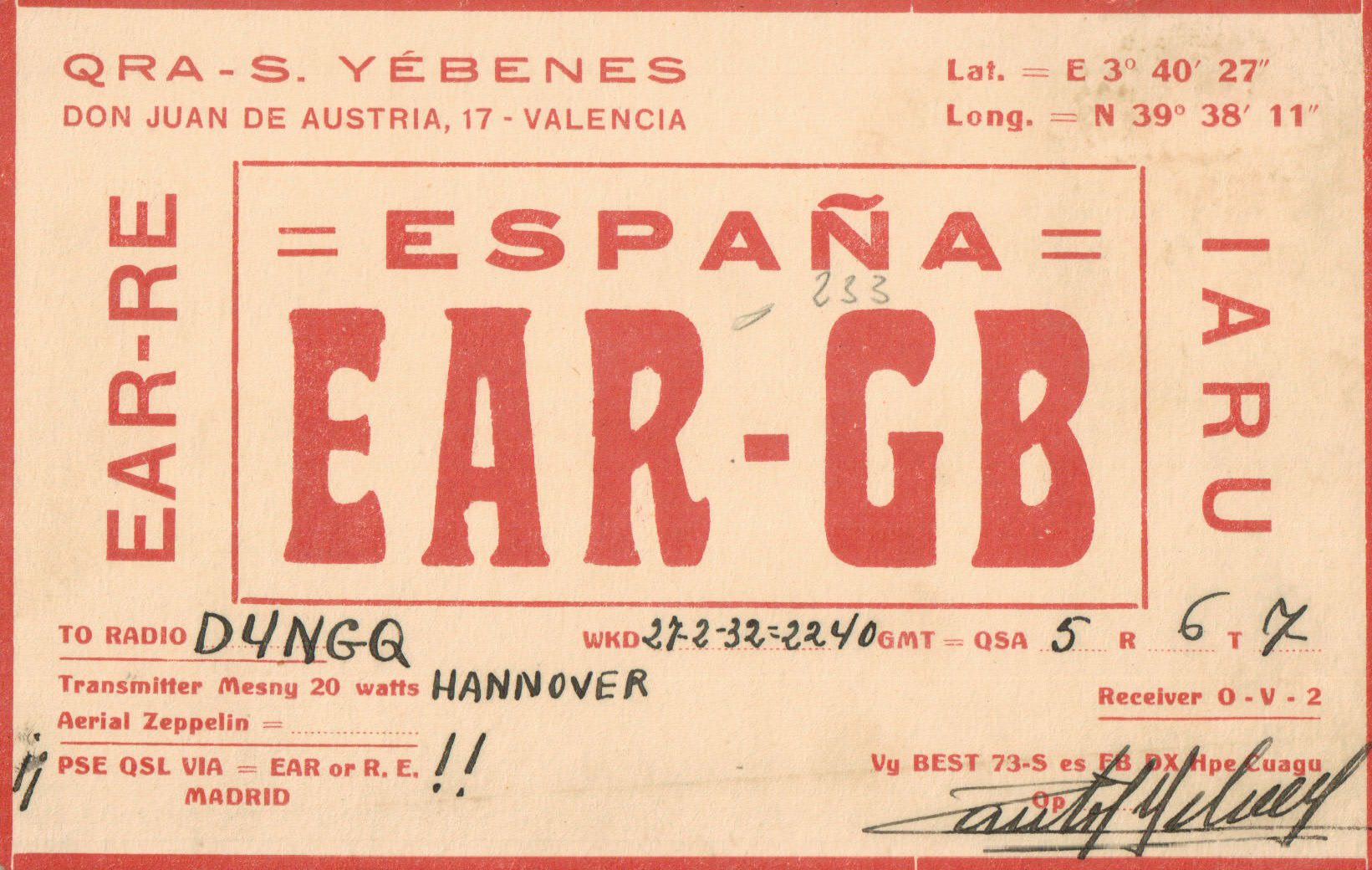 | EAR-5X | Julián Yébenes Muñoz | 1931 | EAR-228 | EA5BC, EA4CL | Valencia | |