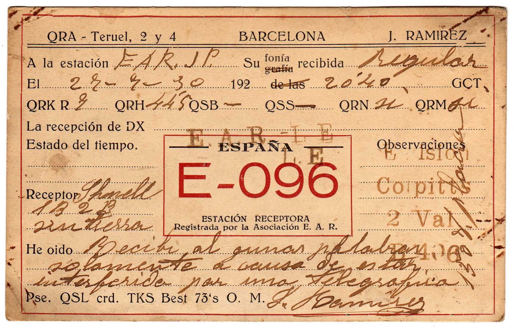 | EAR-C8 | Juan Durán Pinet | 1929 | EAR-167 | EA3BO | E-046 | Barcelona |