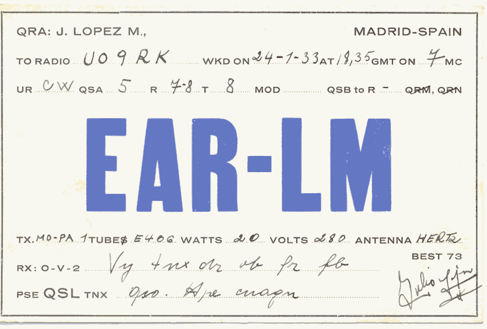 | EAR-SS | Pedro Sáinz | 1931 | EAR-267 | EA4BK | Madrid | |