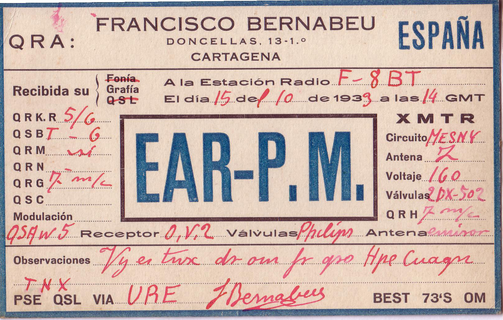 | EAR-Z | Francisco Morales | 1931 | EAR-146 | EA6AE | Mahón (IB) | |