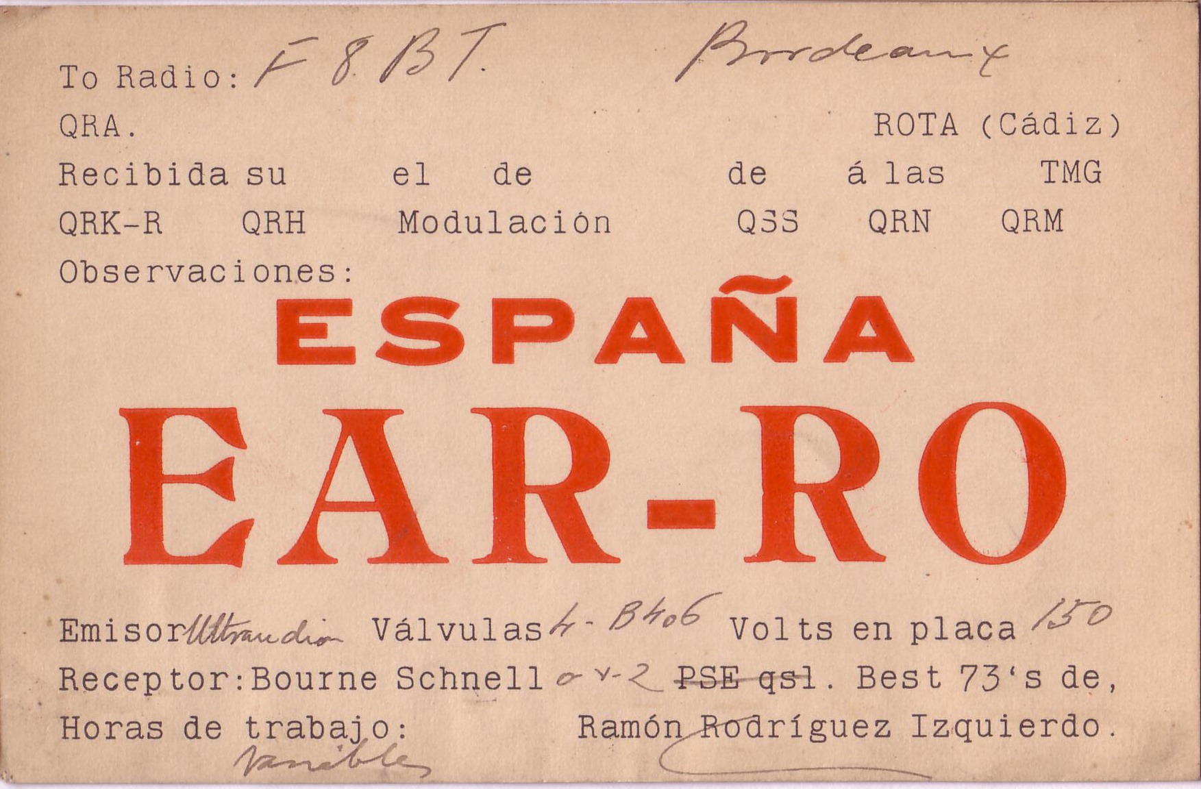 | EAR-RO | Ramón Rodriguez Izquierdo | 1929 | EAR-091 | EA7AN | E-074 | Rota (CA) |