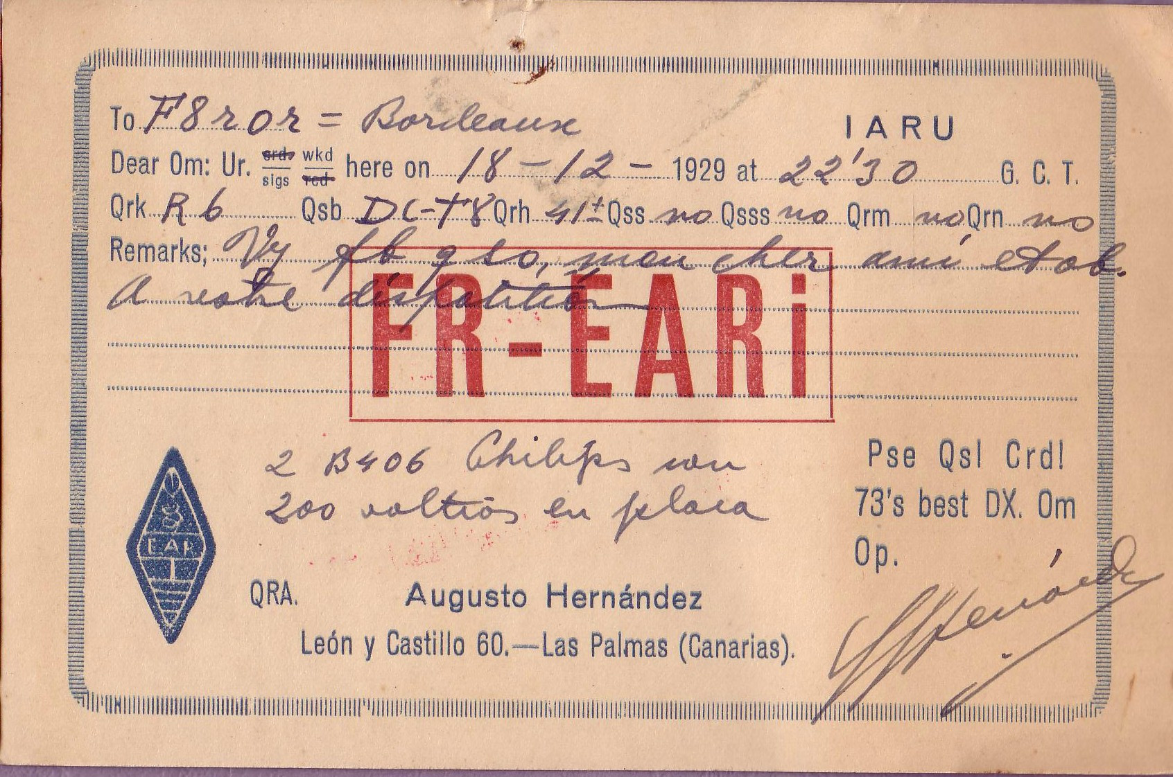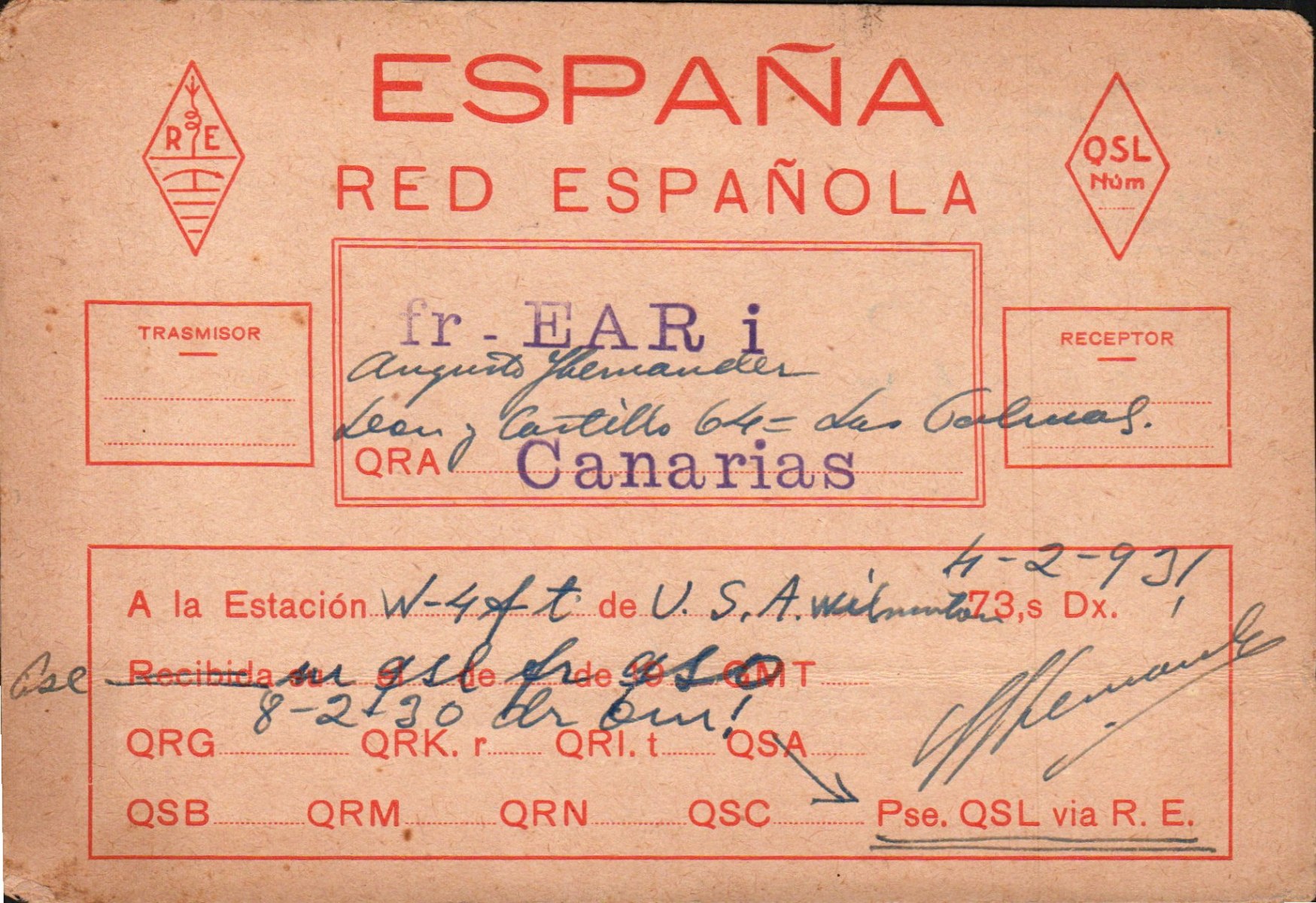 | FR-EAR-L | Jacinto E. Casariego | 1931 | EAR-231 | EA8AH | Sant Cruz de Tenerife | |